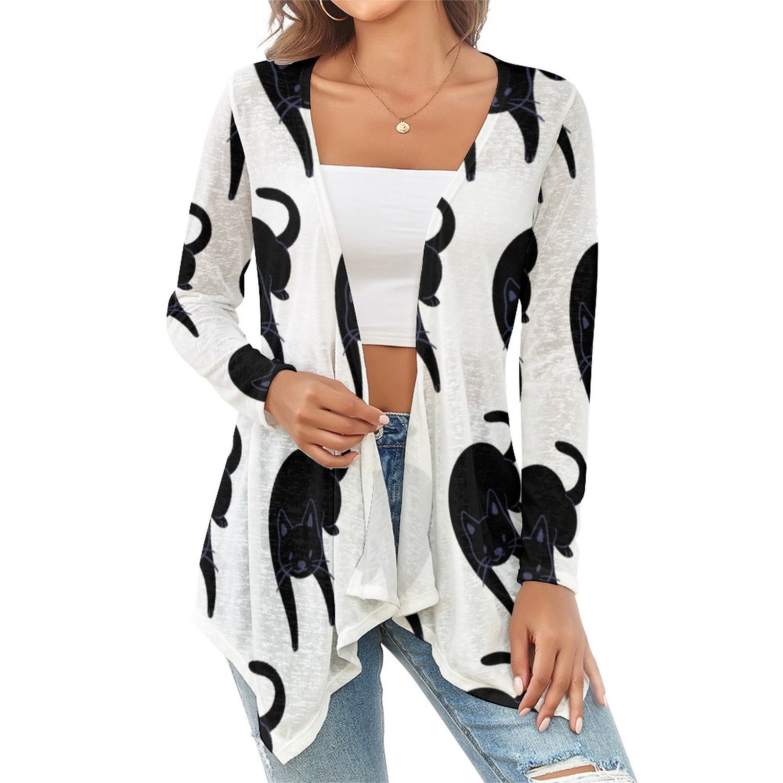 S-2XL Kitty Voices Black Cat Women Draped Front Open Cardigan Elegant Casual Irregular Hem Duster