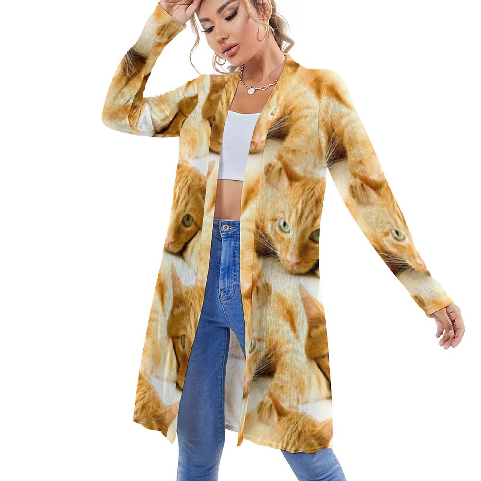 Women Funny Vintage Orange Ginger Cat Open Front Cardigans Sweaters Printing Loose Thin Flowy Coats Outerwear